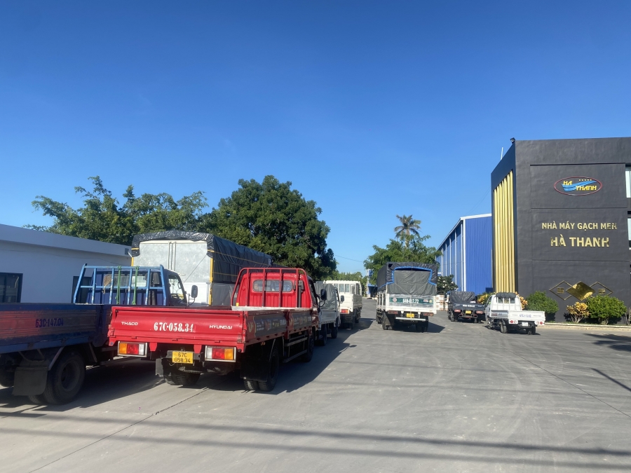 Đoàn xe tấp nập ra vào xuất hàng ở Nhà máy Gạch men Hà Thanh Đồng Tháp