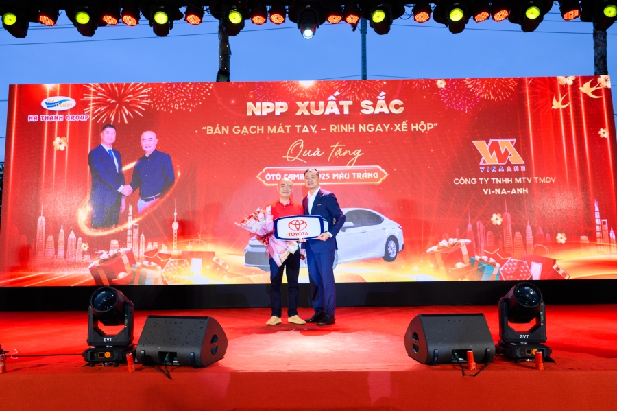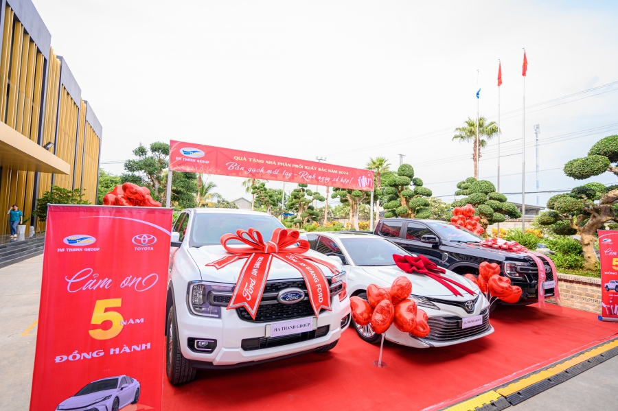 Chặng đường đáng tự hào của Gạch men Hà Thanh không thể trọn vẹn nếu thiếu đi tinh thần hợp tác, cùng nhau tiến về phía trước của những đại lý, nhà phân phối xuất sắc. Tại sự kiện tri ân khách hàng 2024, Tập đoàn Hà Thanh đã trao 2 phần quà đặc biệt: 01 Ôtô Camry 2025; 2 xe Ôtô Ford XLS 2025 cho 2 Nhà phân phối Công ty TNHH MTV TMDV Vi-Na-Anh và Công ty TNHH Thiên Kê. Thông qua món quà tri ân đặc biệt, Ha Thanh Group tiếp tục khẳng định triết lý “Đặt khách hàng làm trọng tâm", luôn nhất quán và nỗ lực mang đến quyền lợi cũng như sự hài lòng tối đa cho khách hàng.