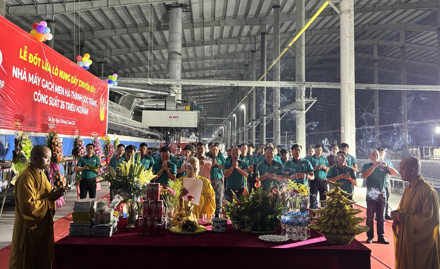 Tại buổi lễ, Ban Lãnh đạo gồm: Ông Nguyễn Đức Hà – Chủ tịch HĐQT, Tổng Giám đốc Ha Thanh Group; Ông Mai Khắc Triệu – Phó Tổng Giám đốc Tập đoàn; Ông Trần Vĩnh Phúc – Phó Tổng Giám đốc Tập đoàn, Giám đốc Nhà máy Gạch men Hà Thanh Sóc Trăng, Ông Nguyễn Hữu Mạnh – Phó Giám đốc Nhà máy Gạch men Hà Thanh Sóc Trăng, ông Nguyễn Văn Khiêm – Giám đốc kinh doanh khu vực phía Nam….đã cùng nhau thắp lên ngọn lửa tiên phong, khởi đầu một kỷ nguyên mới, chính thức khởi động Dây chuyền 1 với lời chúc "Tấn tài, tấn lộc, vạn sự thành công!".
