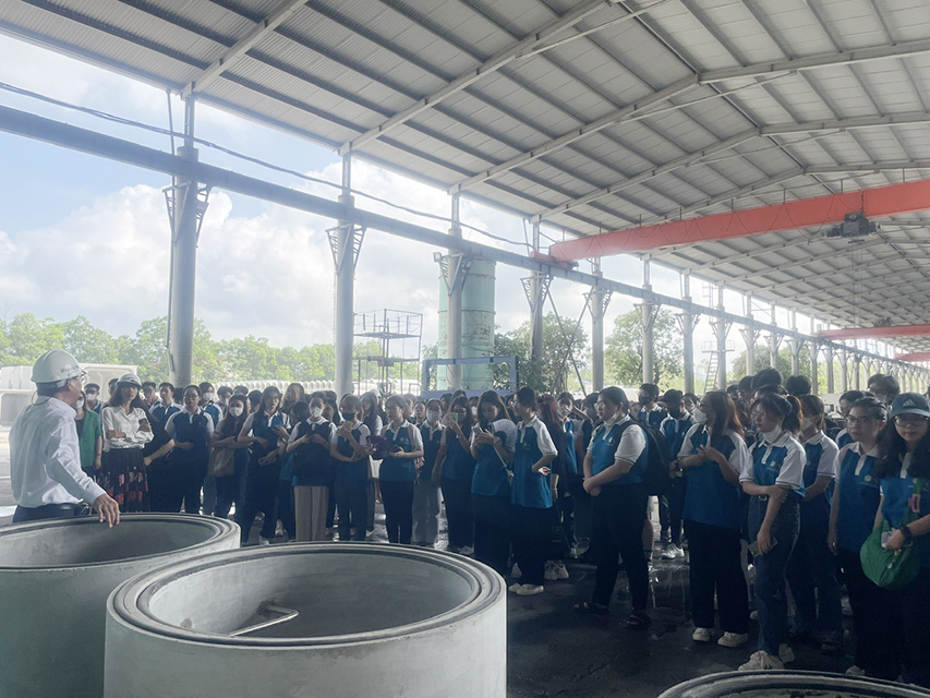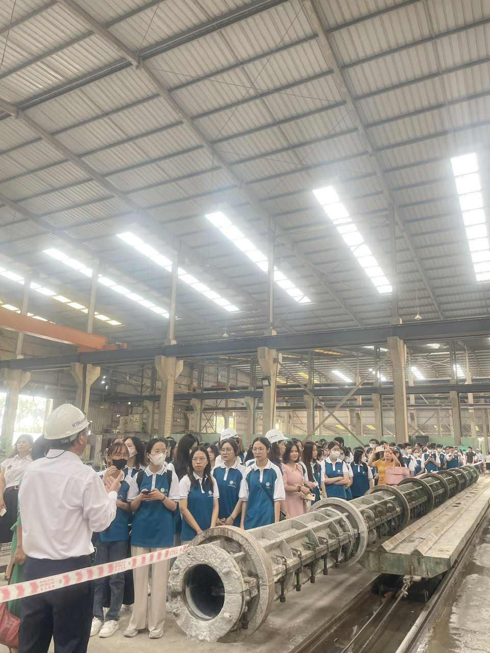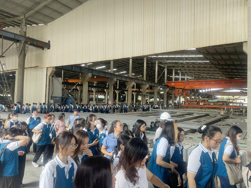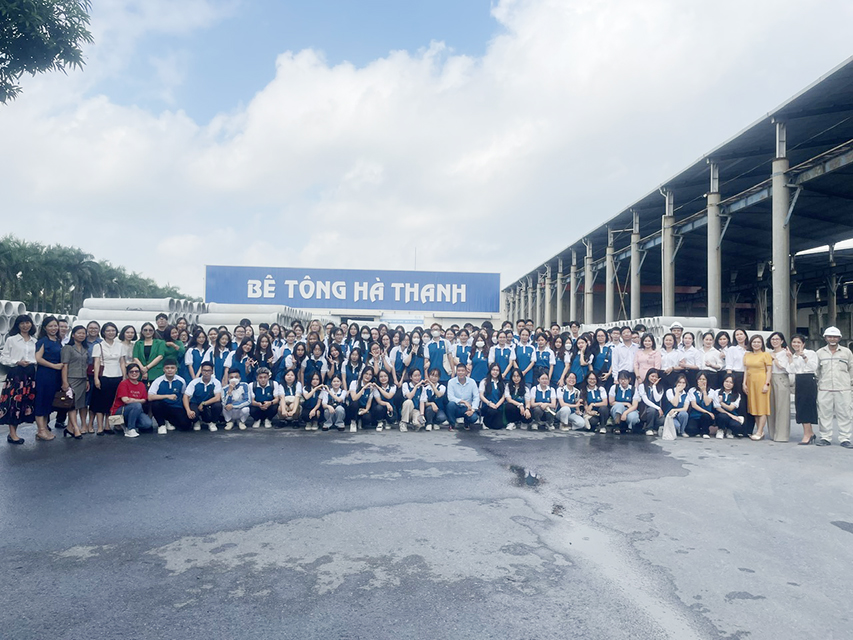 At the visit, 150 lecturers and students of the financial academy toured Ha Thanh's pile, culvert, and concrete production line system. With a scale of 7.5 hectares, Ha Thanh Vinh Phuc Concrete Factory is one of Ha Thanh's large-scale precast concrete structure factories in the Northern market. Currently, Vinh Phuc Concrete Factory produces Stable jobs for more than 300 local workers with an average income of 8 - 15 million VND/person/month.