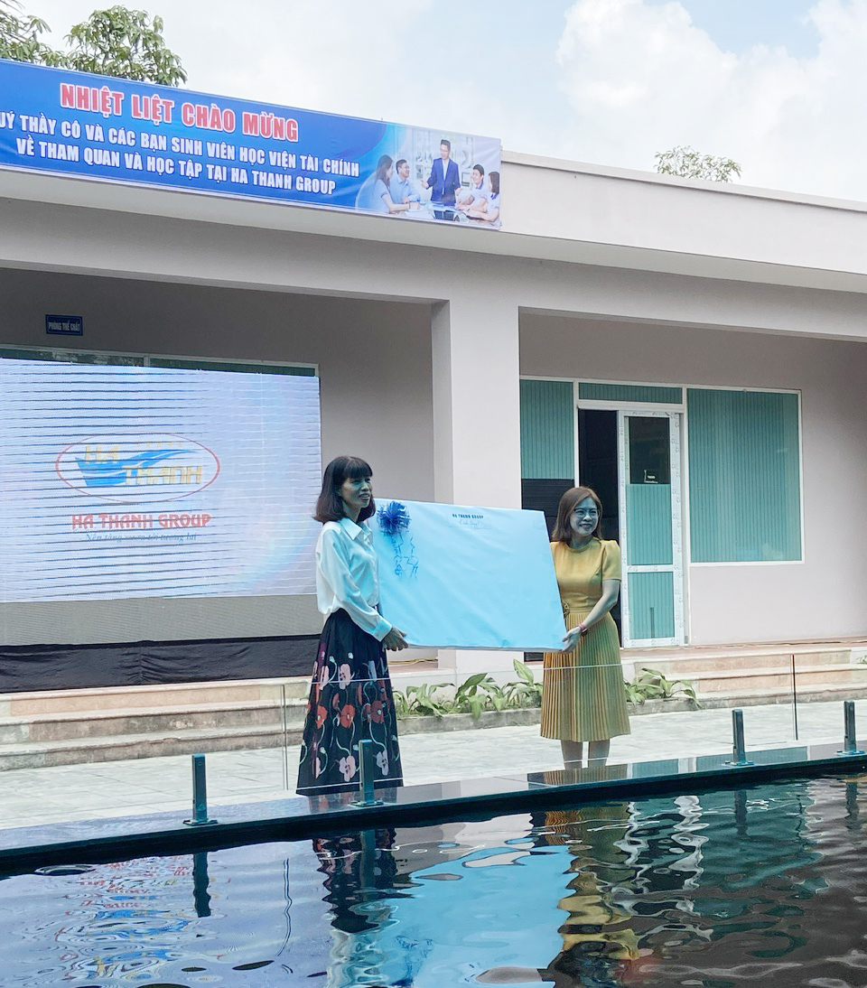 Welcoming the visiting delegation, on Ha Thanh Group's side were Mr. Nguyen Duc Ha - General Director of the Group; Ms. Nguyen Thi Hang - Deputy General Director of the Group; Mr. Duong Hong Nam - Director of Vinh Phuc BTHT Factory; Mr. Nguyen Duy Tinh - Deputy Director of the Factory, and other men and women who are deputy heads of departments, boards of the company and factory. On the Academy of Finance side, there was Ms. Ngo Thi Thu Hong - Associate Professor. Doctor of the Academy of Finance and 150 outstanding students in the high-quality accounting class.