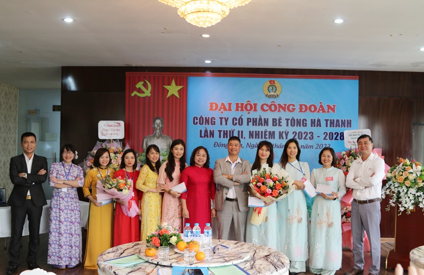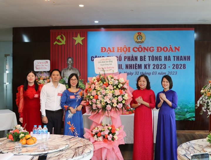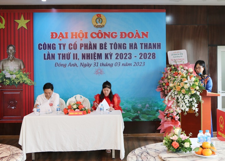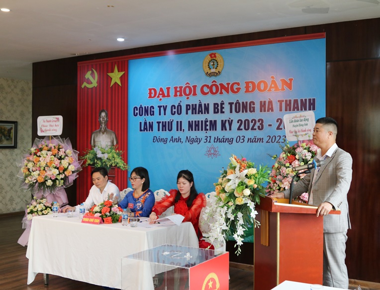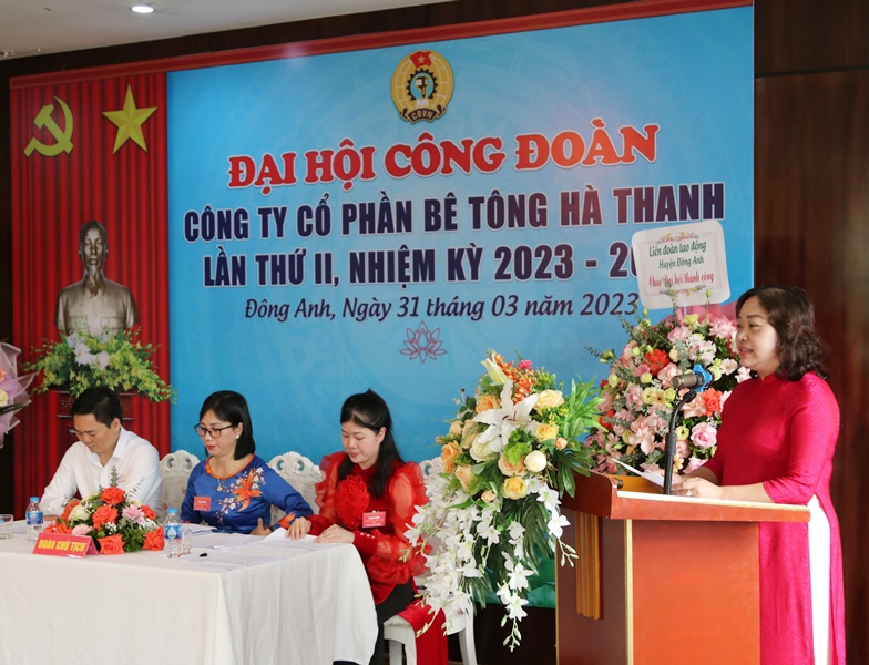 Attending the Congress were Mr. Tran Thu Hang - HUV - Chairman of Dong Anh District Confederation. On the side of Ha Thanh Group, there were Mr. Nguyen Duc Ha - Secretary of the Party cell, Chairman of the Board of Directors - General Director of Ha Thanh Group; Mr. Trinh Van Minh – Deputy General Director of Ha Thanh Group; Mr. Duong Xuan Lap - Deputy General Director of Ha Thanh Group; and 30 typical officials and union members of Ha Thanh attended the Congress.