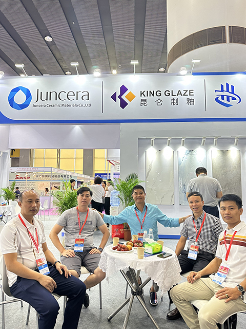 Before attending the exhibition, Ha Thanh Group's leadership delegation included Mr. Nguyen Duc Ha - Chairman of the Board of Directors, General Director of Ha Thanh Group; Mr. Mai Khac Trieu - Deputy General Director of Ha Thanh Group; Mr. Dang Thanh Liem - Director of Sales Department for the North; Mr. Nguyen Van Khiem - Director of Southern Sales Department and some members of the delegation visited and exchanged technology with the Board of Directors of China Litai Group (a large corporation specializing in supply chain systems). high-tech brick production) and Juncera Company (glaze supplier in China).