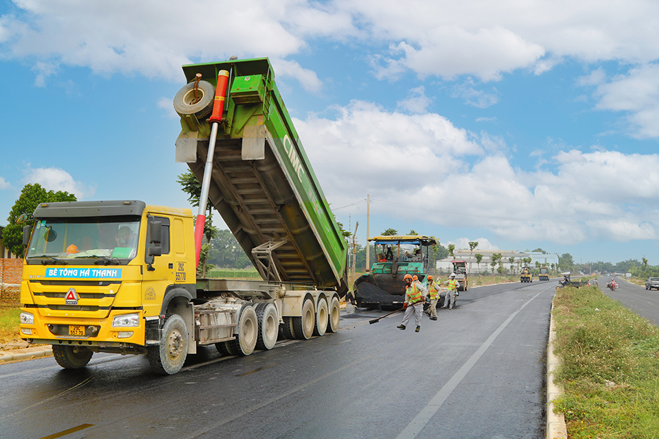 As the unit supplying and constructing Asphalt concrete for the Central Trunk Road Project of Vinh Tuong District - National Highway 2, National Highway 2C Dong Soc Industrial Cluster, this is a key project to gradually improve transport infrastructure, promote local socio-economic development. These days, HA THANH GROUP's asphalt concrete construction team is trying to speed up the completion of project items. Inspection and supervision are regularly implemented to ensure progress, construction quality and issues of traffic safety, labor safety, and environmental sanitation for the project. .