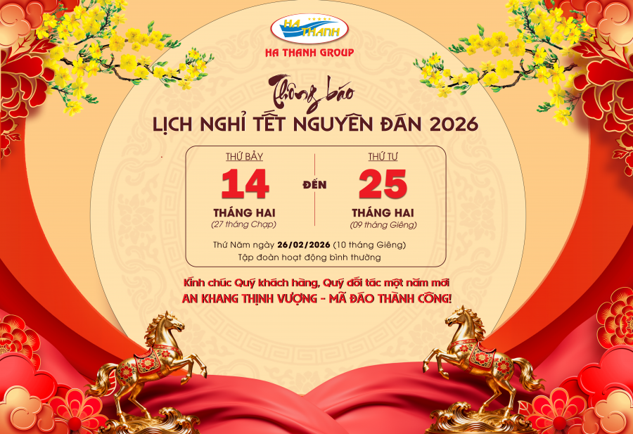 Trong không khí hân hoan chào đón mùa Xuân mới, Ha Thanh Group xin gửi lời cảm ơn chân thành tới Quý khách hàng, Quý đối tác đã luôn đồng hành cùng chúng tôi trong suốt năm qua! Để thuận tiện cho việc liên hệ và sắp xếp công việc, Tập đoàn Hà Thanh xin thông báo lịch nghỉ Tết Nguyên Đán 2026 như sau:
